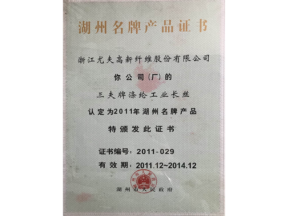 湖州名牌產(chǎn)品證書(shū)2011